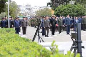 Μετά την επιμνημόσυνη δέηση ακολούθησε κατάθεση στεφάνων από τον Διοικητή της ΑΣΔΥΣ, τον Διευθυντή ΓΕΕΘΑ/ΔΥΓ Υποπτέραρχο (ΥΙ) Κωνσταντίνος Σιαφάκας και τον Γενικό Γραμματέα του Ελληνικού Ερυθρού Σταυρού Γεώργιος Σκούμας. Στην τελετή παρευρέθηκαν επίσης ο Υποναύαρχος (ΥΙ) Σωτήριος Μωραΐτης, ο Ταξίαρχος (ΥΙ) Ιωάννης Καπίρης και ο Ταξίαρχος Ηλίας Πουλακίδας, εκπροσωπώντας τους Αρχηγούς των Κλάδων, καθώς και εν ενεργεία και εν αποστρατεία Αξιωματικοί, τιμώντας τη μνήμη των πεσόντων με σεβασμό και συγκίνηση.