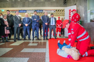 Επίδειξη απινιδωτή στο Μετρό Συντάγματος από τον Ελληνικό Ερυθρό Σταυρό