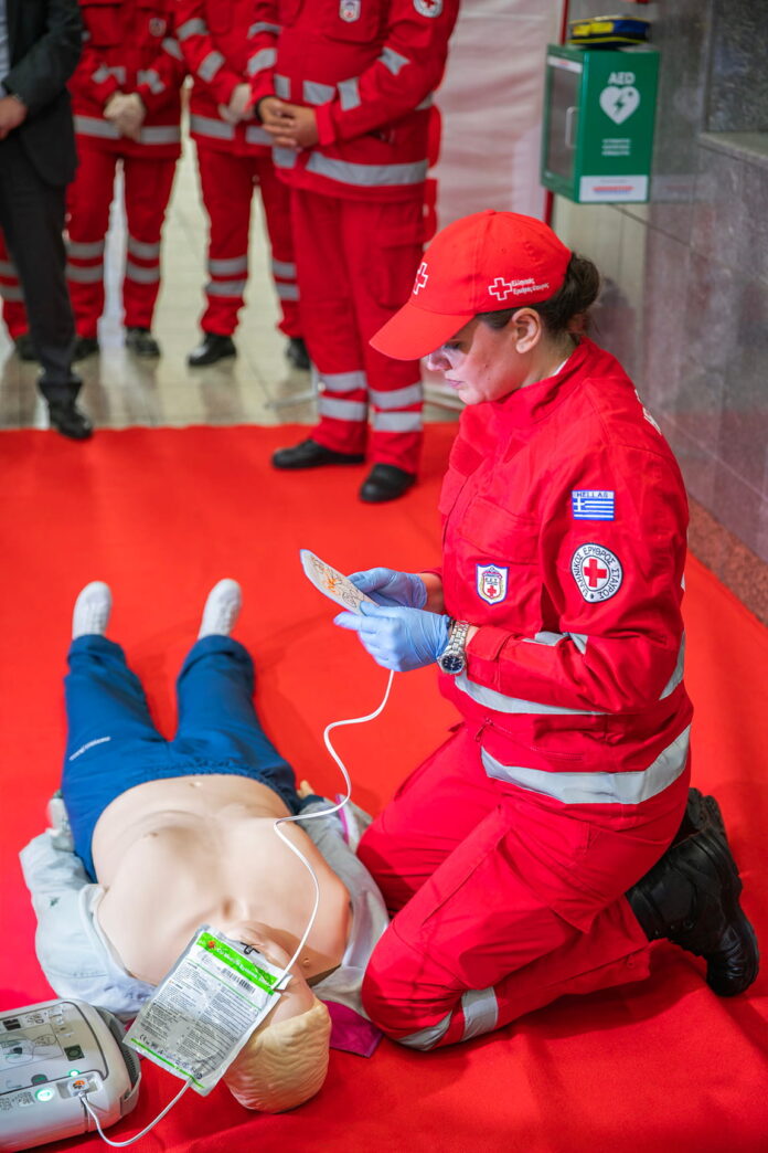 Κατά τη διάρκεια της παρουσίασης έγινε επίδειξη καρδιοαναπνευστικής αναζωογόνησης, αναδεικνύοντας τη σημασία της άμεσης παρέμβασης σε επείγοντα περιστατικά. Ο Πρόεδρος του Ε.Ε.Σ., Αντώνιος Αυγερινός , υπέγραψε ότι τα πρώτα λεπτά είναι κρίσιμα για τη ζωή του ασθενούς και κάλεσε τους πολίτες να εκπαιδευτούν στις Πρώτες Βοήθειες, τονίζοντας τον καθοριστικό ρόλο του απινιδωτή στην αλυσίδα επιβίωσης.