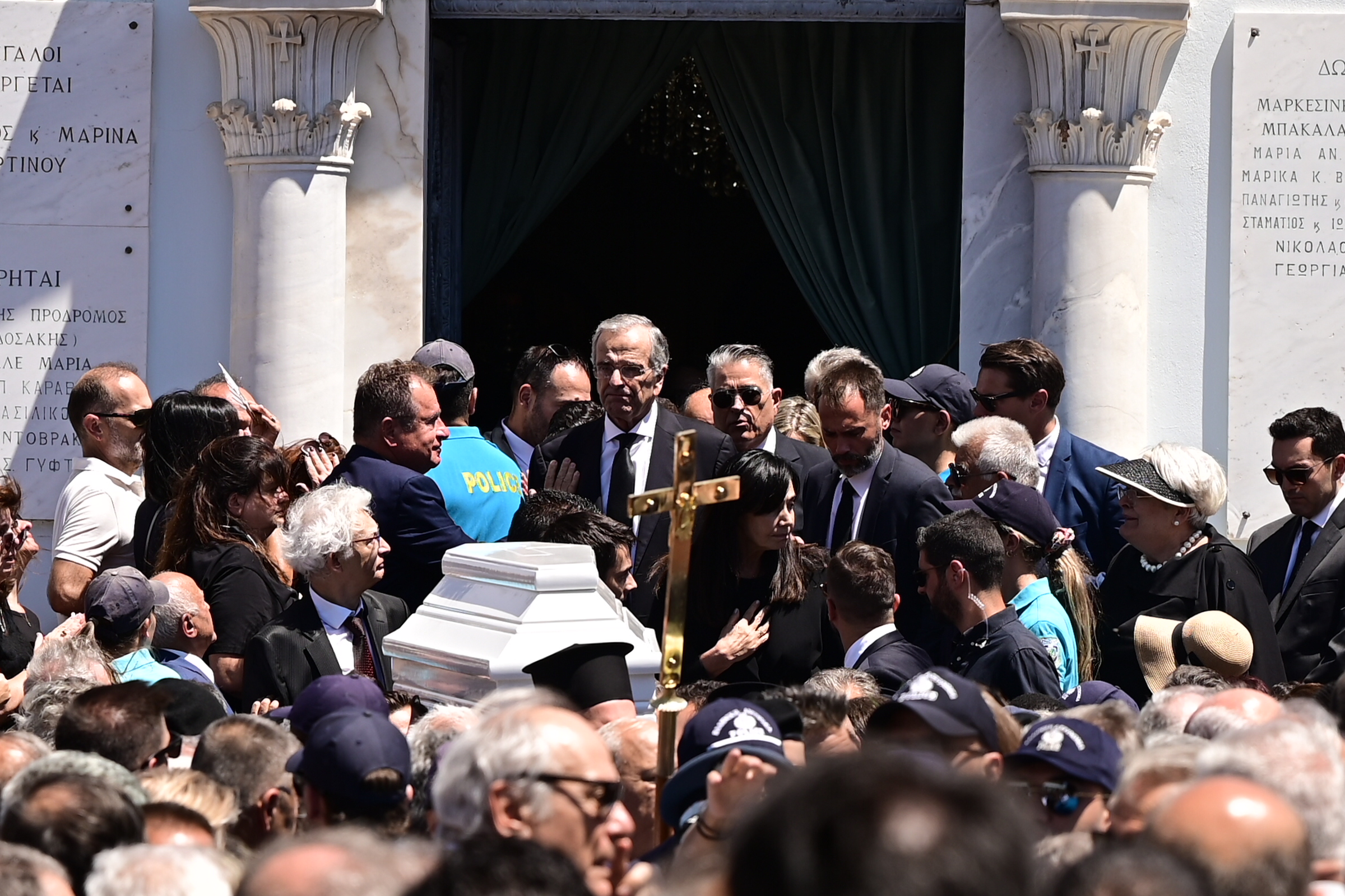 Κηδεία της Λένας Σαμαρά, κόρης του πρώην πρωθυπουργού Αντώνη Σαμαρά, από τον Ιερό Ναό Αγίων Θεοδώρων, στο Α’ Κοιμητήριο Αθηνών, Δευτέρα 11 Αυγούστου 2025. Η Λένα Σαμαρά πέθανε το βράδυ της Πέμπτης(7/8) σε ηλικία 34 ετών. Άφησε την τελευταία της πνοή από ανακοπή στο νοσοκομείο Ευαγγελισμός.