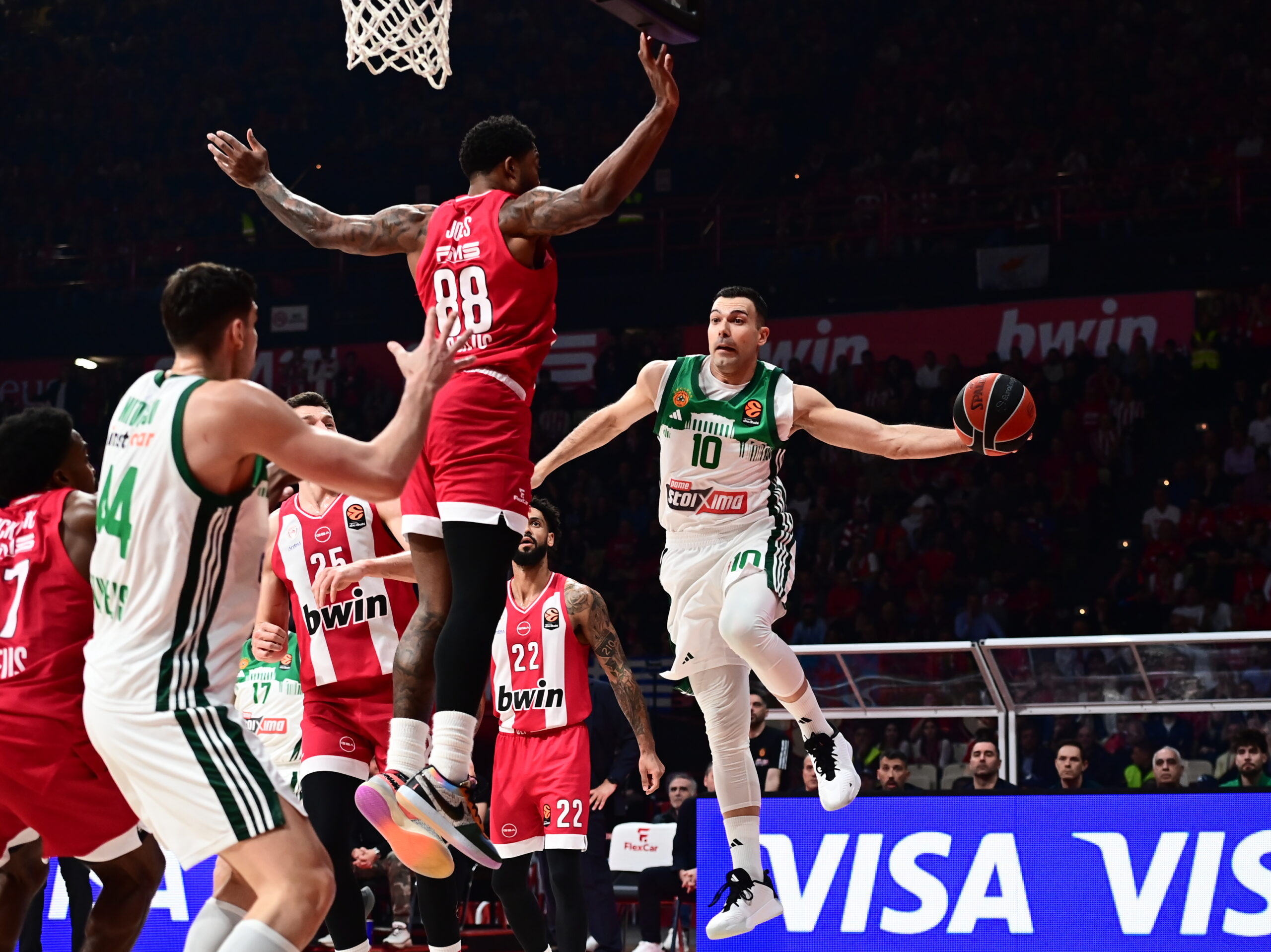 Στην τρίτη περίοδο το παιχνίδι άλλαξε ρυθμό, καθώς ο Παναθηναϊκός ανέβασε την ένταση, βρήκε λύσεις στην επίθεση και κατάφερε να μειώσει τη διαφορά, βάζοντας ξανά φωτιά στο ντέρμπι. Ωστόσο, όταν το παιχνίδι έφτασε στα κρίσιμα τελευταία λεπτά, ο Ολυμπιακός έδειξε μεγαλύτερη ψυχραιμία και εμπειρία. Με μεγάλα καλάθια, δυνατές άμυνες και σωστή διαχείριση της μπάλας, οι Πειραιώτες κράτησαν το προβάδισμα και «κλείδωσαν» τη νίκη που τους φέρνει πιο κοντά στην πρώτη τετράδα της EuroLeague. Το αποτέλεσμα αυξάνει τις πιθανότητες των «ερυθρόλευκων» για πλεονέκτημα έδρας στα playoffs, ενώ την ίδια στιγμή βάζει τον Παναθηναϊκό σε μεγαλύτερη πίεση στη μάχη για την είσοδο στην οκτάδα της διοργάνωσης