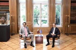 Στο Μέγαρο Μαξίμου συναντήθηκαν ο Πρωθυπουργός Κυριάκος Μητσοτάκης και ο Εμίρης του Κατάρ Σεΐχης Tamim bin Hamad Al Thani, με τις συνομιλίες να επικεντρώνονται στις εξελίξεις στη Μέση Ανατολή και στην ενίσχυση των διμερών σχέσεων. Ο Πρωθυπουργός υπογράμμισε τον ρόλο της Ελλάδας ως παράγοντα σταθερότητας και την ανάγκη για διπλωματική επίλυση των εντάσεων στην περιοχή.