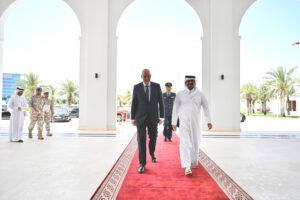 Κατά την έναρξη της επίσκεψής του στη Ντόχα, έγινε δεκτός από τον Εμίρη του Κατάρ, Tamim bin Hamad Al Thani, στο Παλάτι Lusail.