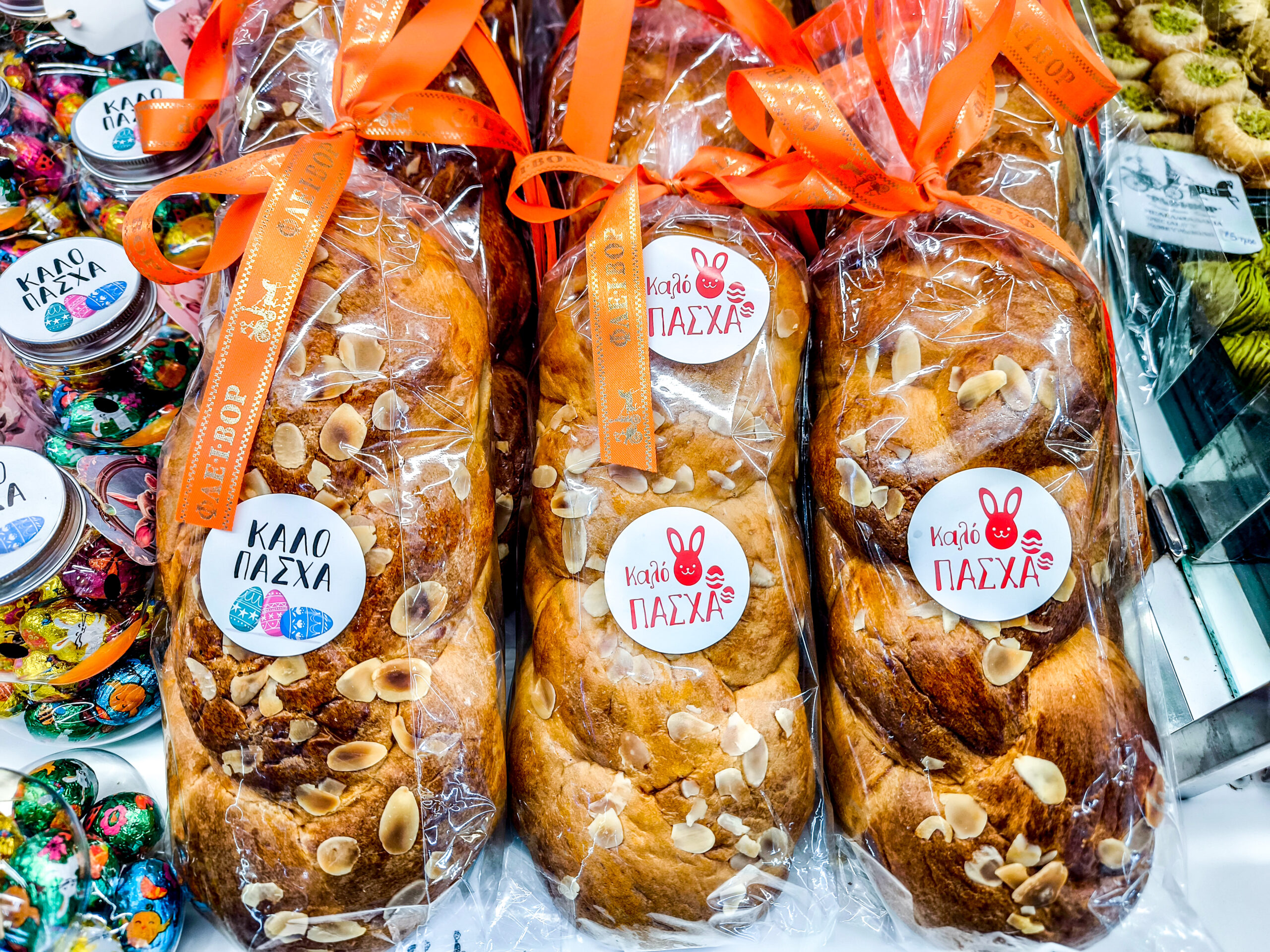 Αλείφεις με αυγό, πασπαλίζεις αμύγδαλα και ψήνεις στους 170–180°C για 25–30 λεπτά μέχρι να ροδίσουν.