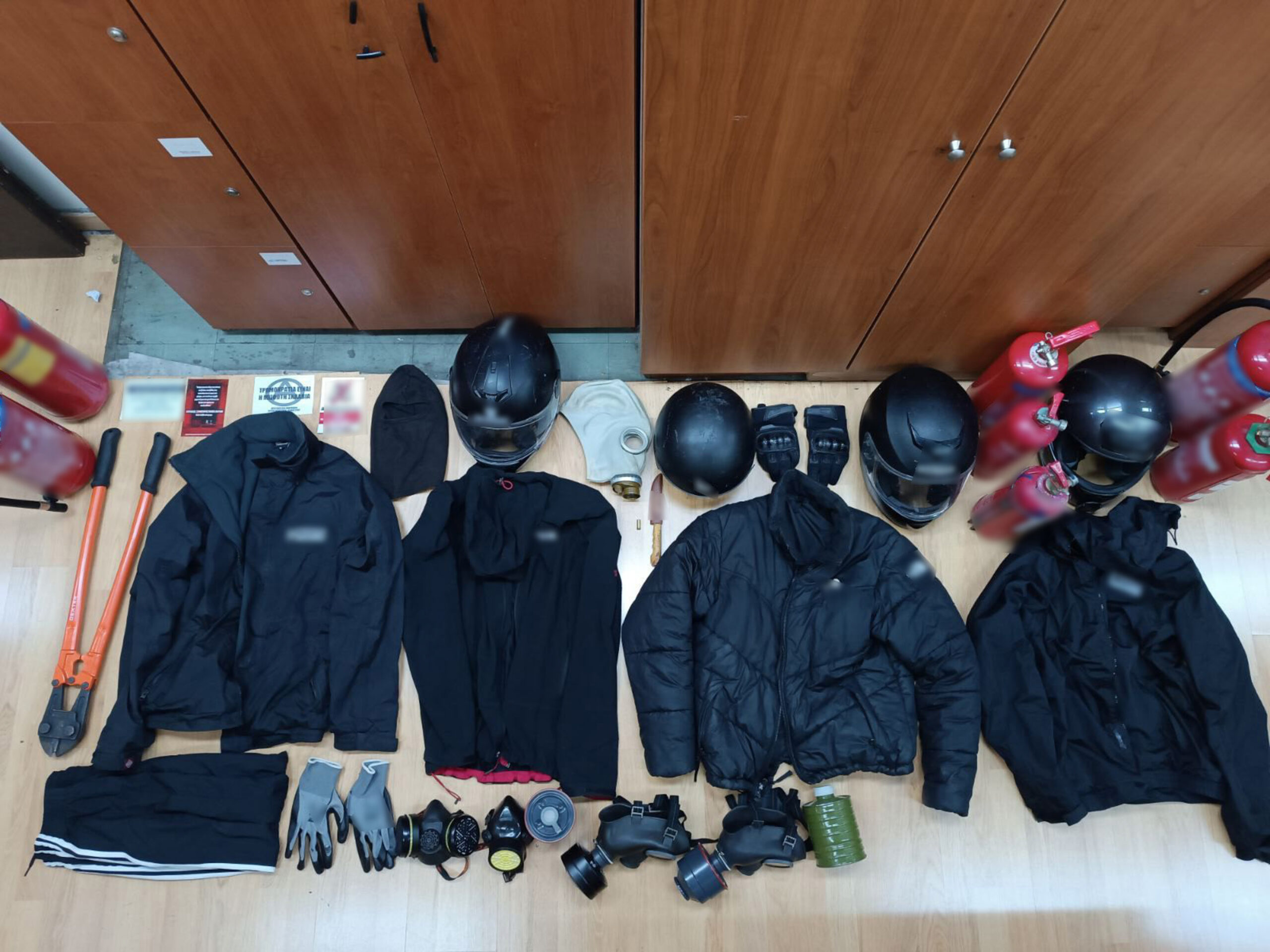 Φωτογραφία που δόθηκε στην δημοσιότητα από την Ελληνική Αστυνομία, την Τετάρτη 14 Μαΐου 2025, και αφορά την σύλληψη έξι ατόμων από την Υποδιεύθυνση Αντιμετώπισης Ρατσιστικής και Εξτρεμιστικής Βίας για την πρόκληση σωματικών βλαβών σε άτομο, κατά τη διάρκεια προγραμματισμένης εκδήλωσης στο κτίριο Νομικής Σχολής του Εθνικού Καποδιστριακού Πανεπιστημίου Αθηνών. Σύμφωνα με την ανακοίνωση της ΕΛ.ΑΣ., συνελήφθησαν την Τρίτη 13 Μαΐου 2025, 6 άτομα, ηλικίας, 25, 23, 25, 19, 22 και 31 ετών αντίστοιχα, η συμμετοχή των οποίων ταυτοποιήθηκε στην επίθεση που έλαβε χώρα την 30-04-2025 σε αίθουσα στο κτίριο Νομικής Σχολής του Εθνικού Καποδιστριακού Πανεπιστημίου Αθηνών κατά τη διάρκεια προγραμματισμένης εκδήλωσης, η οποία είχε ως αποτέλεσμα τον τραυματισμό παρευρισκόμενου ατόμου. Σε βάρος τους σχηματίστηκε δικογραφία για -κατά περίπτωση- εγκληματική οργάνωση (συμμορία) απαρτιζόμενη από άτομα που έχουν οργανωθεί με σκοπό την από κοινού, κατόπιν συναπόφασης και με κοινό δόλο, τέλεση κακουργήματος και πλημμελημάτων με τα οποία επιδιώκεται η προσβολή της ζωής, της σωματικής ακεραιότητας, της ιδιοκτησίας ή της περιουσίας, διατάραξη της λειτουργίας υπηρεσίας, βαριά σκοπούμενη σωματική βλάβη, παράνομη βία, εξύβριση και φθορά πράγματος που είναι τοποθετημένο σε δημόσιο χώρο και χρησιμεύει για κοινό όφελος, άνευ πρόκλησης του παθόντος, για παράβαση της νομοθεσίας για τα όπλα και για απείθεια. Στη δικογραφία περιλαμβάνονται επιπλέον 3 άτομα, τα στοιχεία των οποίων δεν έχουν ακόμη ταυτοποιηθεί, καθώς και μία 29χρονη, η οποία κατηγορείται για υπόθαλψη – παρεμπόδιση δικαιοσύνης. Στο πλαίσιο διερεύνησης της υπόθεσης, έπειτα από συλλογή και αξιοποίηση πληροφοριακών στοιχείων και δεδομένων, καθώς και εξέτασης μαρτύρων, προέκυψε η σύσταση και ένταξη των κατηγορουμένων σε δομημένη εγκληματική οργάνωση, η οποία λειτούργησε κατόπιν λεπτομερούς σχεδιασμού κινήσεων και ανάθεσης ρόλων στα μέλη της, επιδιώκοντας τη διάπραξη κακουργήματος και πλημμελημάτων και συγκεκριμένα βαριά σωματική βλάβη και διατάραξη της λειτουργίας της υπηρεσίας, παράνομης βίας και πρόκληση φθορών εντός των χώρων του Πανεπιστημιακού Ιδρύματος