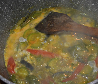 Σιγομαγειρεύουμε μέχρι να δοκιμάσουμε και να έχουν σχεδόν μαγειρευτεί τα λαχανικά.