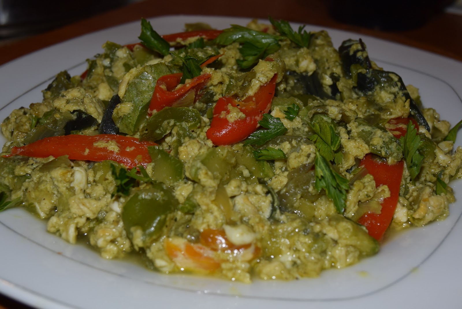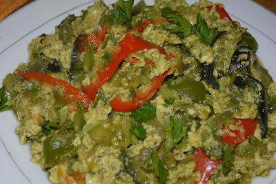 Εναλλακτικά μπορούμε να μαγειρέψουμε τα λαχανικά να τα αδειάσουμε σε αντικολλητικό ταψάκι,να ρίξουμε τα αυγά από πάνω και να το ψήσουμε σε προθερμασμένο φούρνο για 15 λεπτά περίπου μέχρι να ψηθεί η ομελέτα .